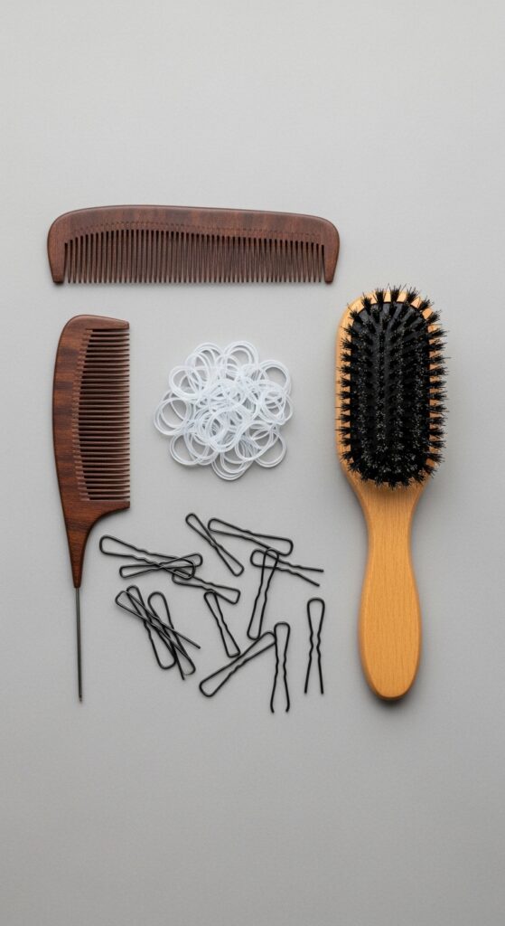 U-shaped pins are better than bobby pins for securing braids to your head; they hold more hair and lie flatter. The right tools give you precision, which is the enemy of bulk.