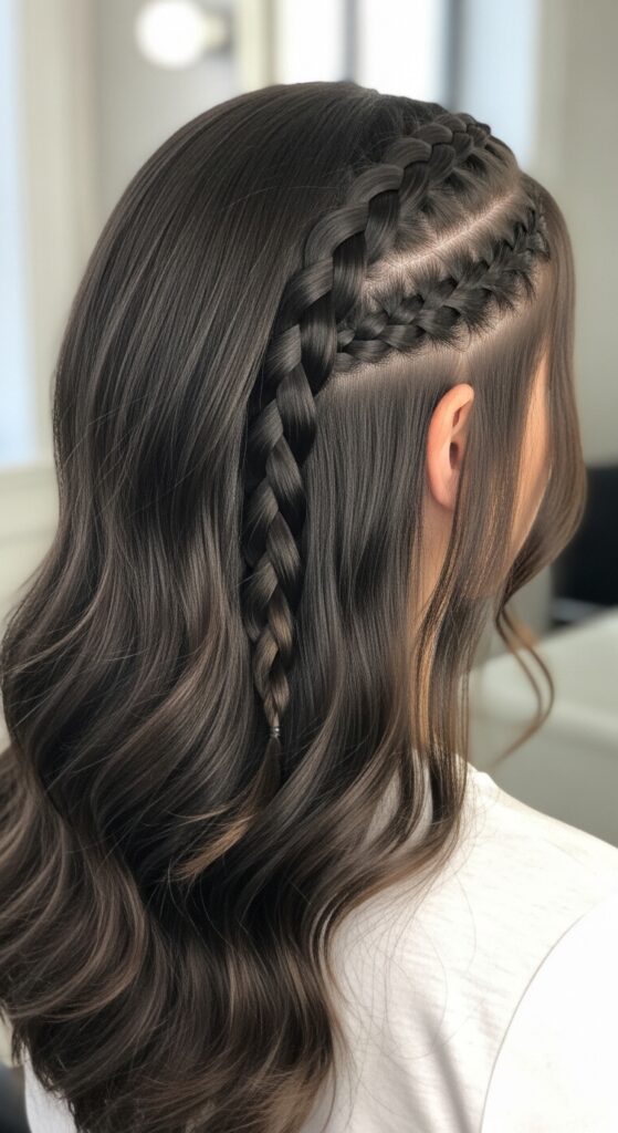 Try a mini rope braid or a three-strand braid starting at your temple, following the line of your lob. Pin it back behind your ear. It’s a modern, chic take on braids that feels fresh and perfectly suited for shorter, thick hair.