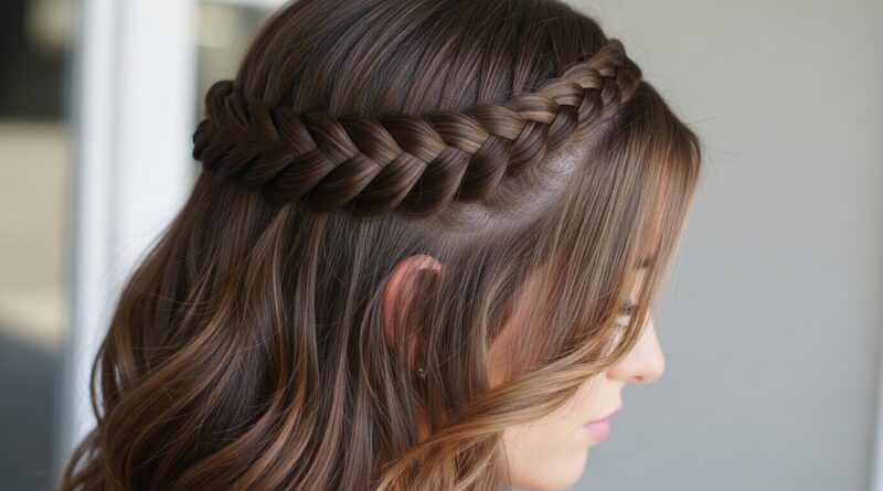 If a full braid feels like too much, a half-up style is your answer. It removes weight from the crown and temples, where bulk is most noticeable. Create a small, flat Dutch braid on each side, or a single braid at the crown.