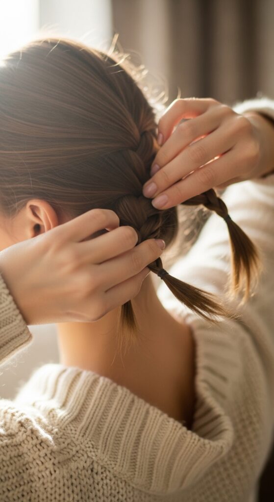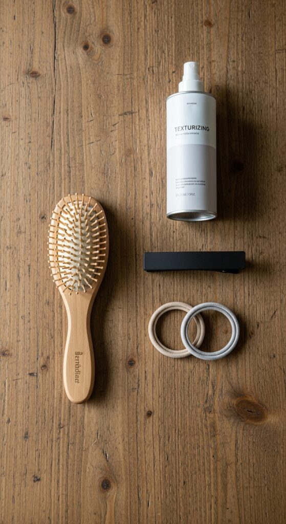 You don’t need much. A good hair elastic is key—find one that’s strong but doesn’t snag. A few small, clear elastics are great for securing ends. A light-hold hairspray or texturizing spray can help grip, especially if your hair is silky.