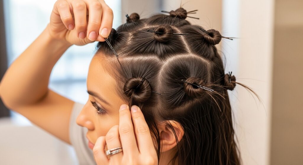 If you want more defined waves without heat, the twist-and-pin method is a great alternative. This works best on slightly damp hair.