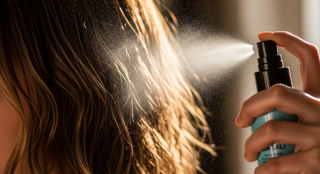 For a quick, on-the-go beachy look, sea salt spray is your best friend. This method enhances natural texture and works especially well for wavy or curly hair.