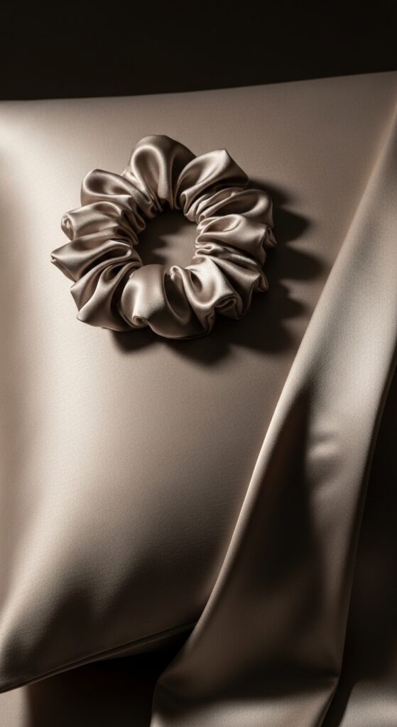 Small, clear elastics. A silk pillowcase and scrunchie. A lightweight hair oil or spray for refreshing. That’s it!