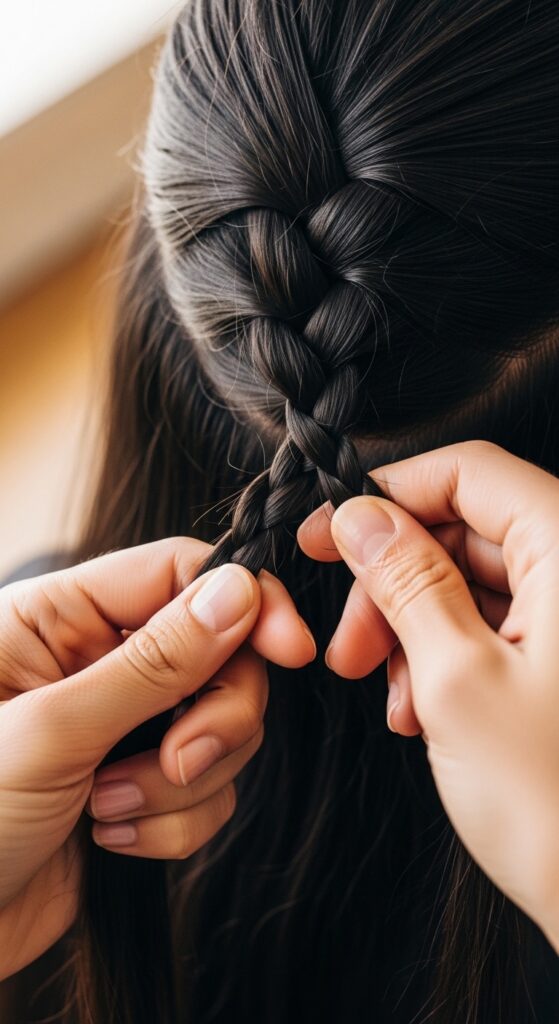 Start tight. The first three crosses of your braid, right at the root, need to be done with firm tension. This anchors the entire braid. You can ease up slightly as you go down the length.