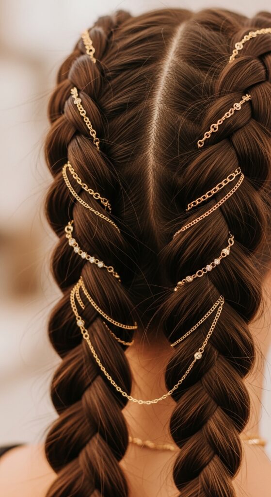 Or, weave in a few delicate chains for a touch of quiet luxury bob elegance. You can even go for romantic goth hairstyles with dark velvet ribbons. Accessories hide any minor frizz and renew the look.