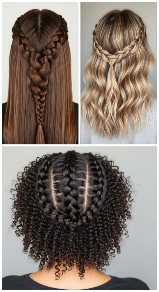 Think about placement. A middle part is classic. A deep side part feels more romantic. For a modern twist like the asymmetrical lob or vampire haircut, you could do more braids on one side.