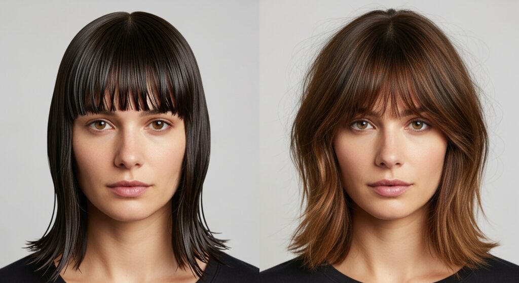 Before we pick up the scissors (please, don’t just yet!), let’s define our goal. Angled bangs are characterized by a distinct diagonal line that is shorter at one side of the face and gradually lengthens toward the other. Unlike blunt bangs, which create a heavy, straight-across line, angled bangs are dynamic. They create movement, draw the eye, and can be tailored to flatter virtually every face shape.