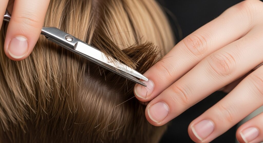 Point Cutting: Instead of cutting straight across, the stylist holds the shears vertically and snips into the ends of the hair. This creates a soft, irregular edge that eliminates harsh lines and contributes significantly to the “choppy” effect.