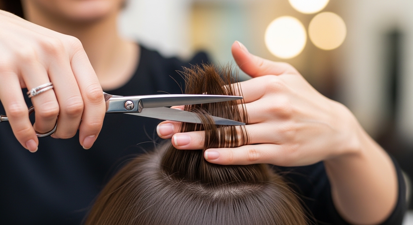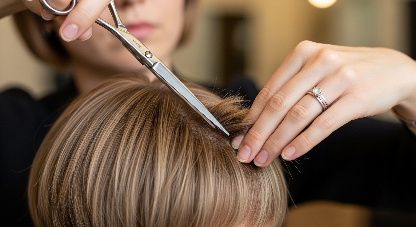 - Holding shears vertically and snipping into ends creates soft, irregular edges—no harsh lines.