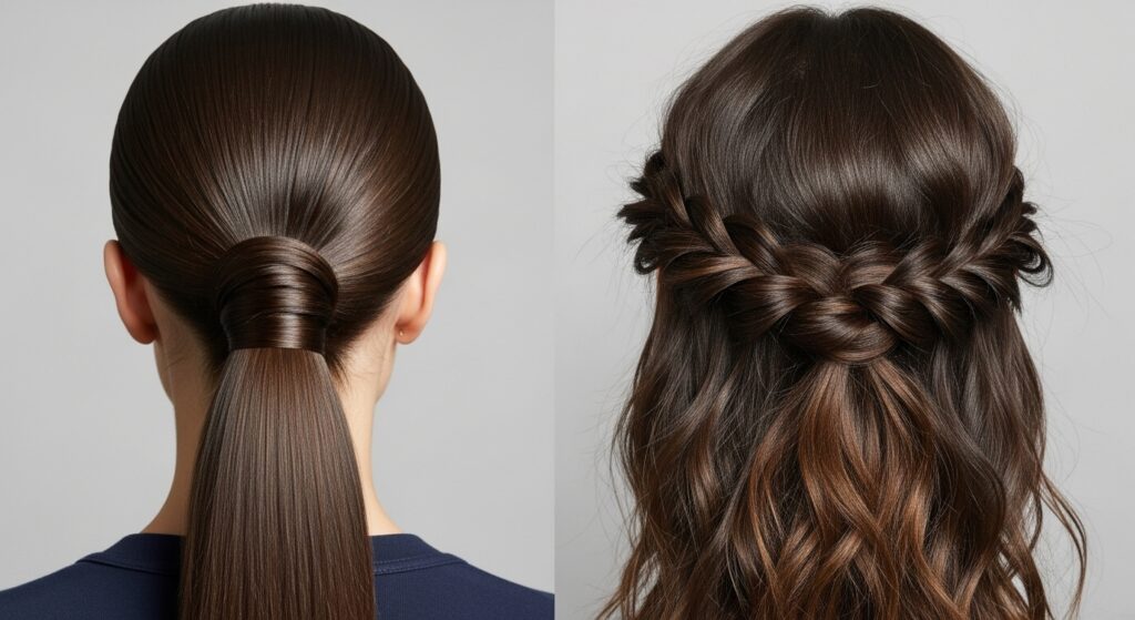 Good Quality Hair Ties and Bobby Pins: Avoid thick, bulky elastics. Use thin, coil-free hair ties or scrunchies that won’t dent your hair. Bobby pins in a color that matches your hair are essential for invisible anchoring.