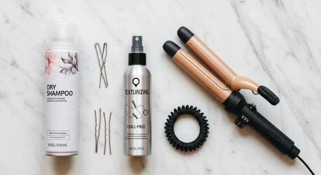 Gather Your Tools: You will need a coil-free elastic (or two), a bag of strong, quality bobby pins that match your hair color, texturizing spray, and a light-hold hairspray. That’s your arsenal.