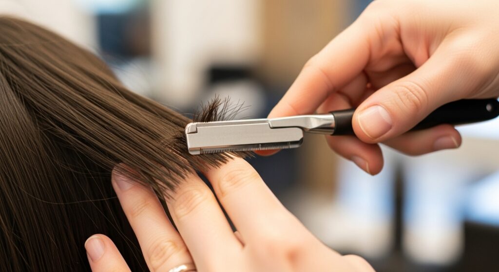 Razoring or Point Cutting: This technique is a game-changer. Instead of cutting straight across, your stylist will use a razor or scissors to cut into the ends of the hair vertically. This “shatters” the ends, making them softer, more piecey, and less bulky, which instantly encourages texture.