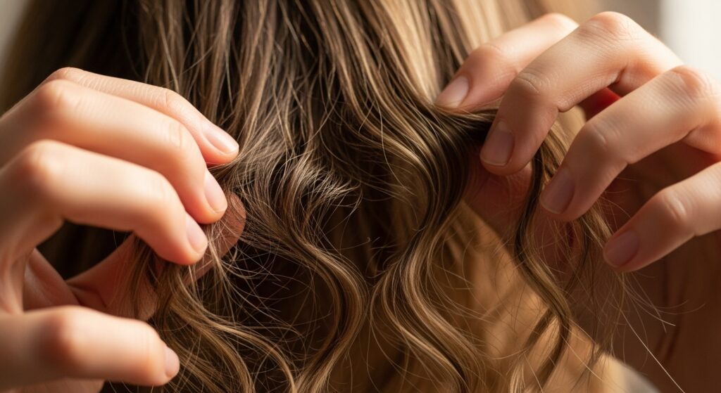 If you used a mousse or gel, your hair will likely dry with a “cast”—a slightly hard, crispy feeling. This is a good thing! This cast is what locks your waves in place all day, protecting them from humidity and preventing frizz. The “effortless” part comes from what you do next.