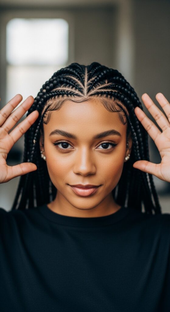 This keeps your entire style looking crisp and intentional, perfect for nailing that glitchy glam hair aesthetic with sharp braids.