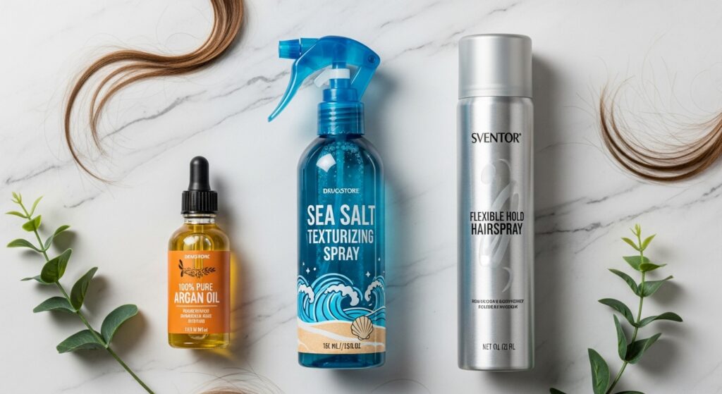 Strong-Hold, Lightweight Hairspray: Skip the aerosol clouds that leave hair stiff and crunchy. Look for a flexible hold hairspray. The trick is to hold the can about 10-12 inches away from your head and mist it over your styled hair, then gently pat the hair with your palms. This sets the style without disturbing the movement or creating that dreaded “helmet head.”