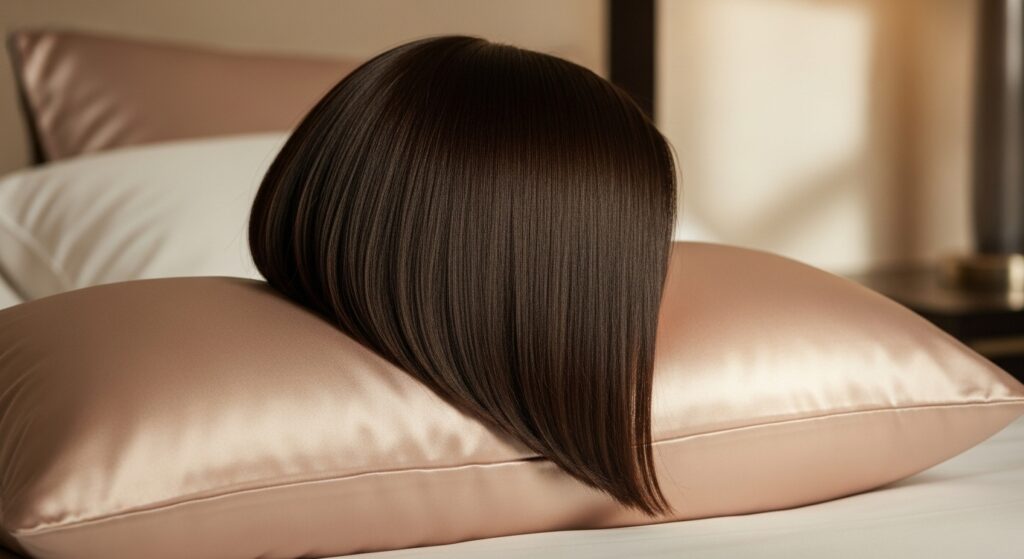 How you treat your hair while you sleep is just as important as what you do to it during the day. Cotton pillowcases create friction that roughens the hair cuticle, leading to frizz and flyaways that destroy your sharp angles.