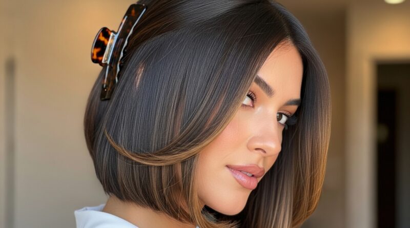 The Classic Claw Clip: Pull the front sections of your hair back loosely and secure them at the crown with a large, neutral-toned claw clip. This instantly creates a chic, face-framing effect that highlights the angle of your cut while looking effortlessly cool.