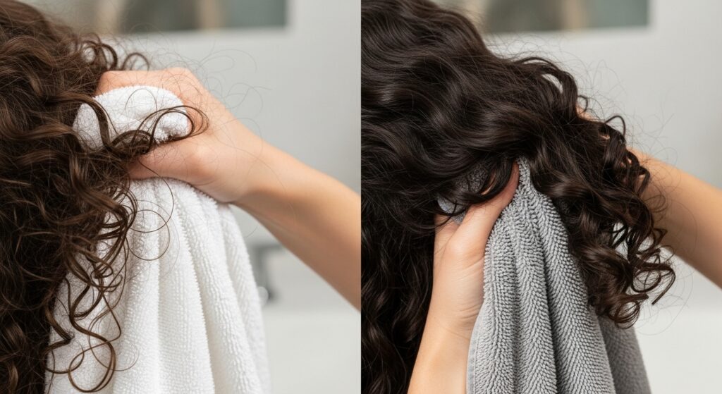 Swap it immediately for a microfiber towel or a simple, clean cotton t-shirt. Both are incredibly smooth and cause minimal friction. After applying your styler, use your t-shirt or microfiber towel to gently scrunch out the excess water. Don’t rub! Just cup sections of your hair and squeeze upward. This simple switch will instantly reduce frizz, enhance your curl pattern, and give you a much smoother, shinier finish. It’s a luxury result for less than the price of a coffee.