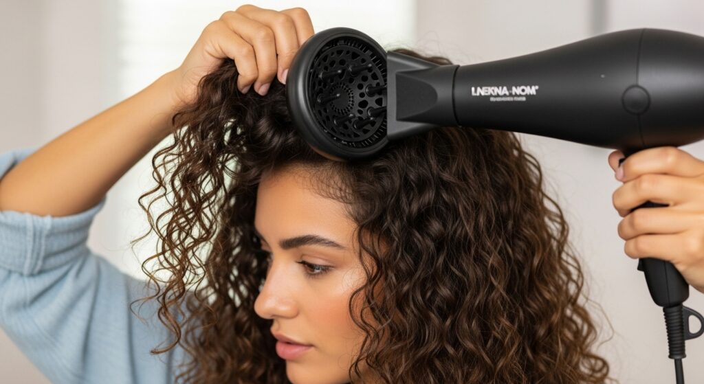 The technique is what makes it look expensive. First, do not turn the dryer on until the diffuser is in place. Cup a section of your curls and lift them up to your scalp. Hold it there for a few minutes on a low heat and speed setting, then turn the dryer off before moving to the next section. This “hovering” or “pixie diffusing” method sets the cast without causing chaos. It creates incredible root volume and preserves your beautiful curl clumps, preventing them from getting blown apart into a frizzy mess.