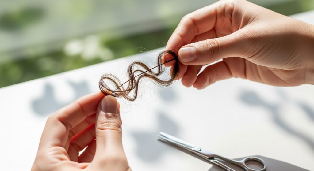 Never use craft or kitchen scissors, as they will damage your ends further. By proactively removing split ends, you prevent them from traveling up the hair shaft and causing more damage. This keeps your ends looking healthier, thicker, and less frizzy between professional cuts, preserving your hair’s overall expensive appearance.