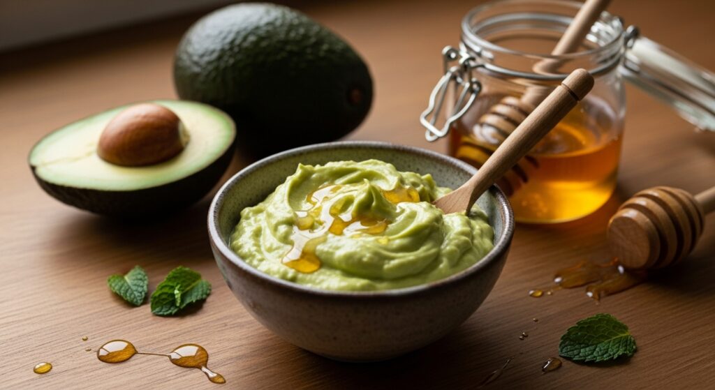 Avocado & Honey Mask: Mash one ripe avocado with a tablespoon of honey and a tablespoon of a carrier oil like olive or coconut oil. This creates a protein-moisture balancing mask that is incredibly nourishing.