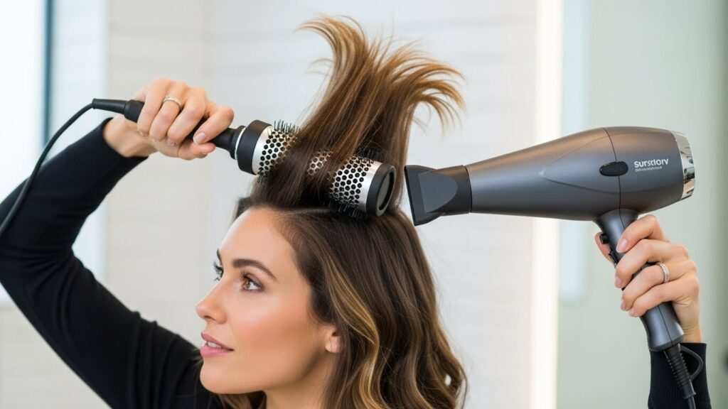 This is where the magic happens. Mastering the blow-dry is the single most effective way to add lasting volume. After applying your root booster to towel-dried hair, start by flipping your head upside down and blow-drying the roots until they are about 80% dry. This rough-dries the hair with maximum lift at the base.