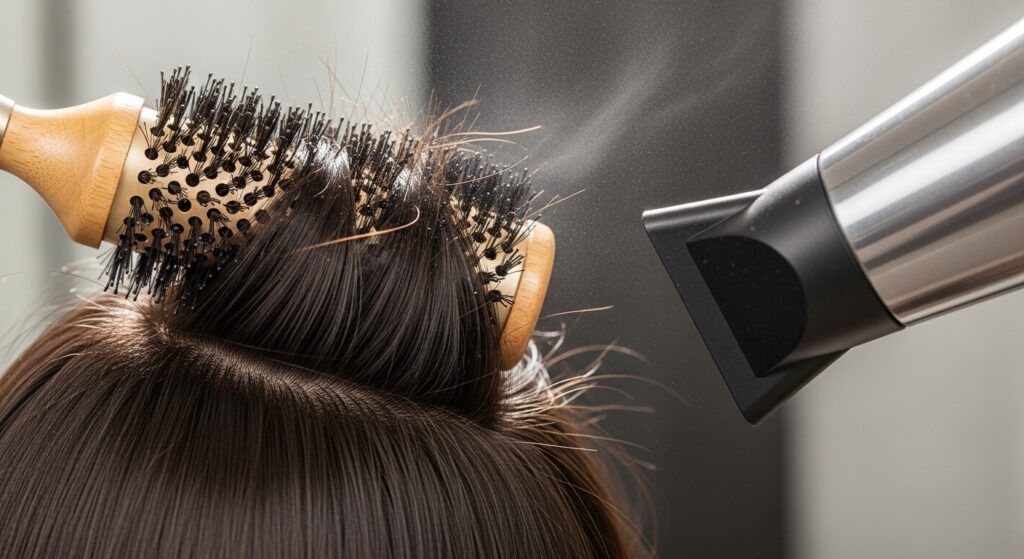 Another game-changing trick is to create a “volume bump” at the crown. Once your hair is dry, take a section at the top of your head, backcomb the roots gently with a fine-tooth comb, and then smooth the top layer over it. This creates invisible lift that lasts all day. Remember, the goal is height and airiness, not a 1980s tease.