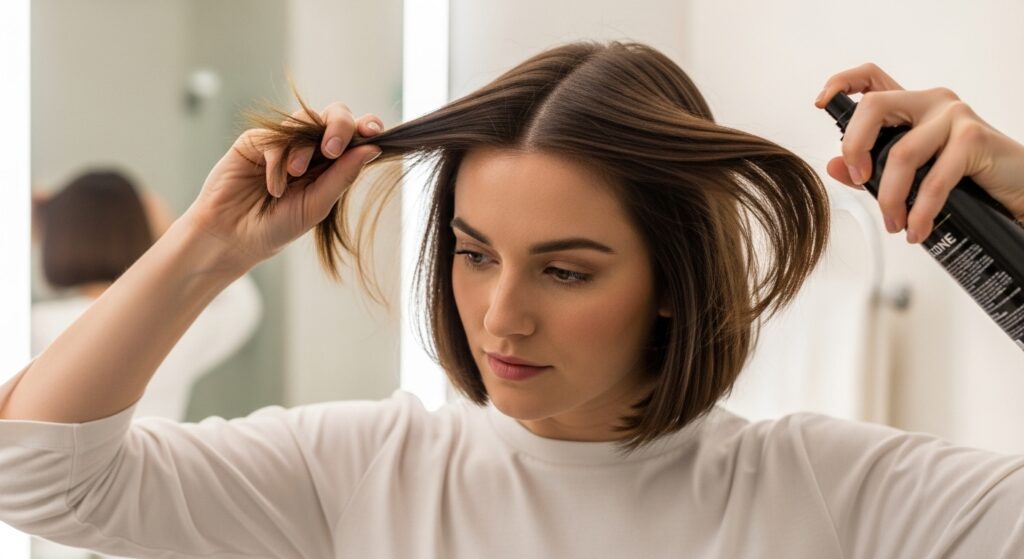 Also, protect your hair from heat styling. Always use a heat protectant spray before you pick up any hot tools. This simple step can prevent split ends and maintain your hair’s natural shine, ensuring your bob stays bouncy and full of life between trims.
