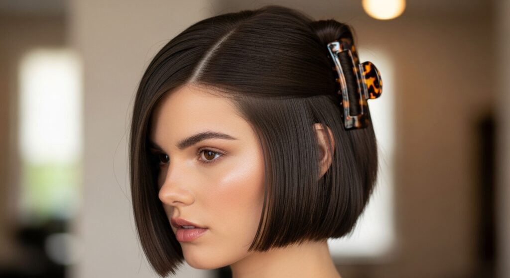 Never underestimate the power of accessories to elevate your bob. A bold, colorful headscarf tied as a headband adds a pop of personality and keeps hair out of your face. Statement barrettes and claw clips are also having a major moment. Pull back just the front sections of your hair and secure them with a decorative clip at the back of your crown for an elegant yet playful look that shows off your bob’s beautiful shape.