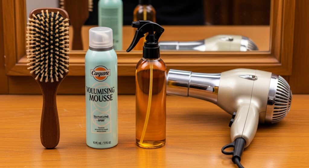 The next non-negotiable step is thoroughly drying your hair. Attempting to set or curl damp hair that isn’t bone dry will result in a frizzy, undefined mess that won’t hold its shape. Blow-dry your hair completely, using a round brush to lift the roots and create as much volume as possible. Once dry, you can add a light-hold mousse or a texturizing spray at the roots for extra oomph.