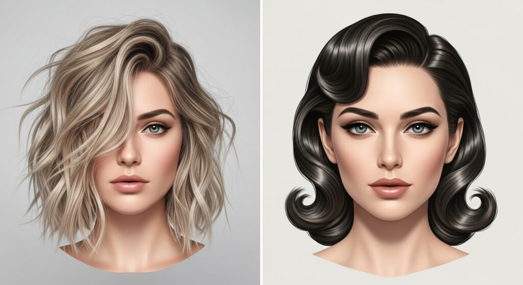 Another key feature is the polished finish. Retro styles are known for their sleekness, with not a flyaway in sight. This is often achieved with strategic pinning, setting, and the use of finishing products. Finally, look for structured ends—whether they’re flipped outward, rolled under into a neat curve, or formed into a perfect “C” shape. The modern lob might be tousled, but the retro lob is deliberate and precise.