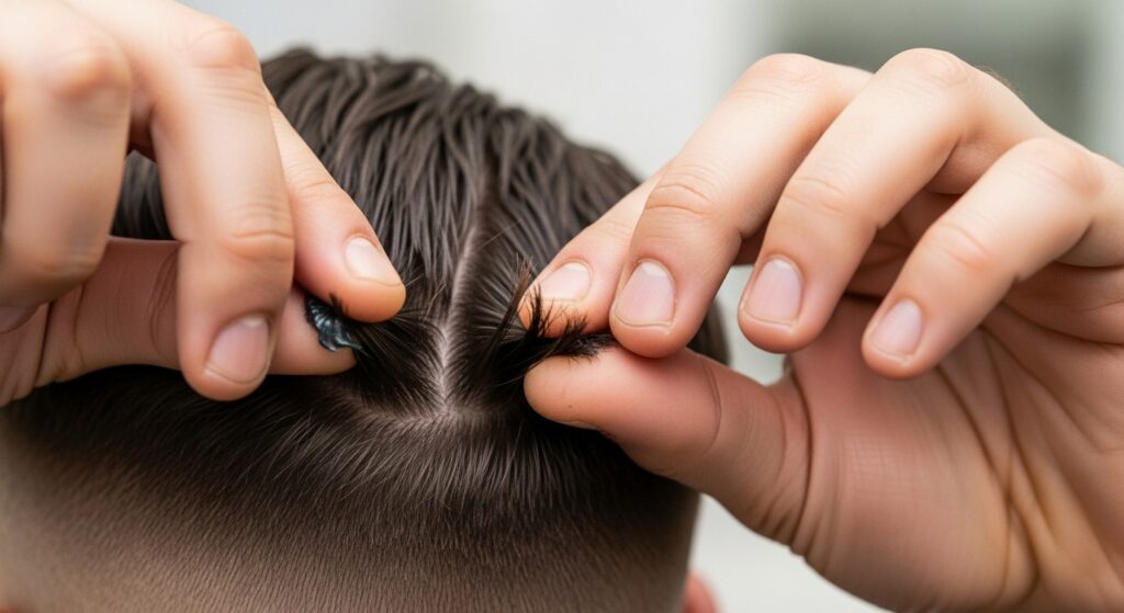 Start by flipping your head over and gently massaging your roots to loosen any flattened areas. If your volume is lacking, a dry shampoo is your best friend. It will absorb oil and add instant grit and lift at the roots. Spray it strategically at the crown and part line.