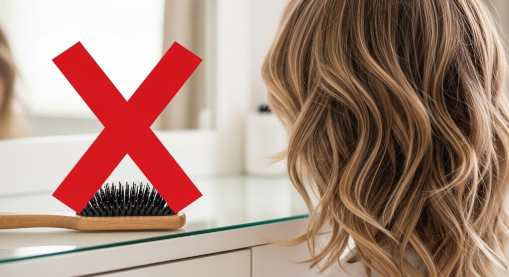 Brushing After Styling: Once your hair is dry and styled, put the brush down! Brushing will break up your waves and create a poofy, undefined look. If you need to detangle, do it in the shower with conditioner in your hair, or use only your fingers once it’s dry.