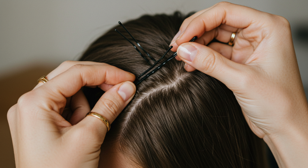 For a quick, product-free fix, bobby pins can work wonders. Here’s how: