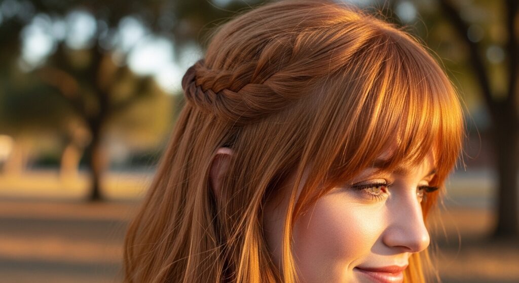 This upgrade isn’t just a change; it’s a statement. Incorporating a small braid into your angled bangs is a beautiful way to control hair away from your face while adding a touch of bohemian romance or edgy detail. It works wonderfully on growing-out bangs or to simply change your silhouette.