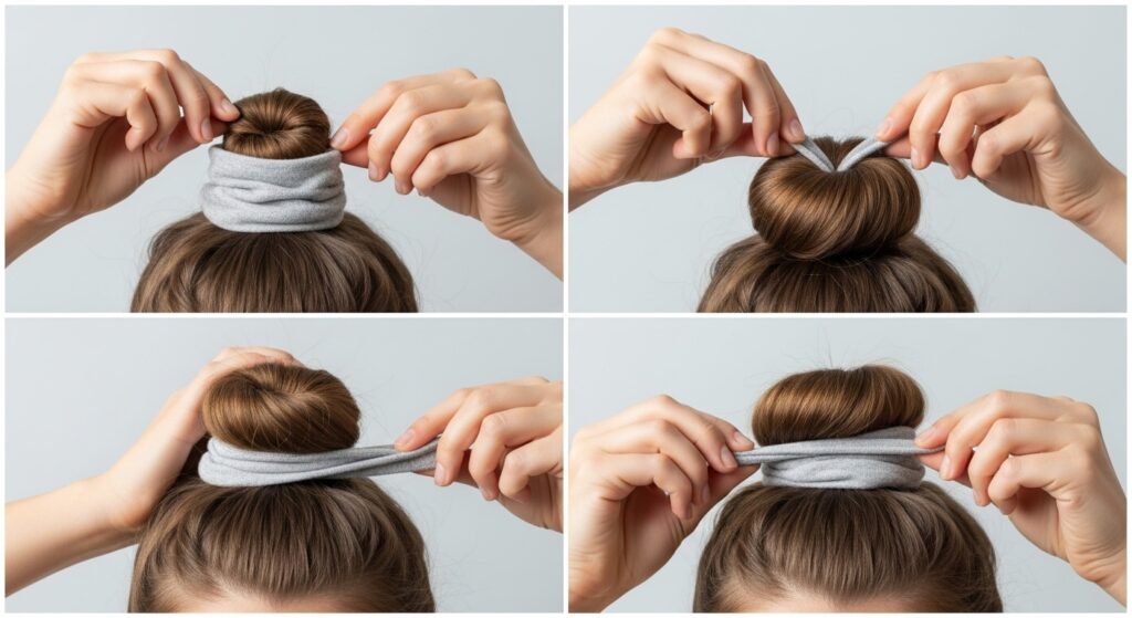This is the ultimate cheat code for a perfect, round, and incredibly bouncy bun. While you can buy a pre-made “bun donut,” a simple sock works just as well. Take a clean sock (ankle socks work best) and cut the toe off. Then, simply roll the sock into itself until it forms a doughnut shape.