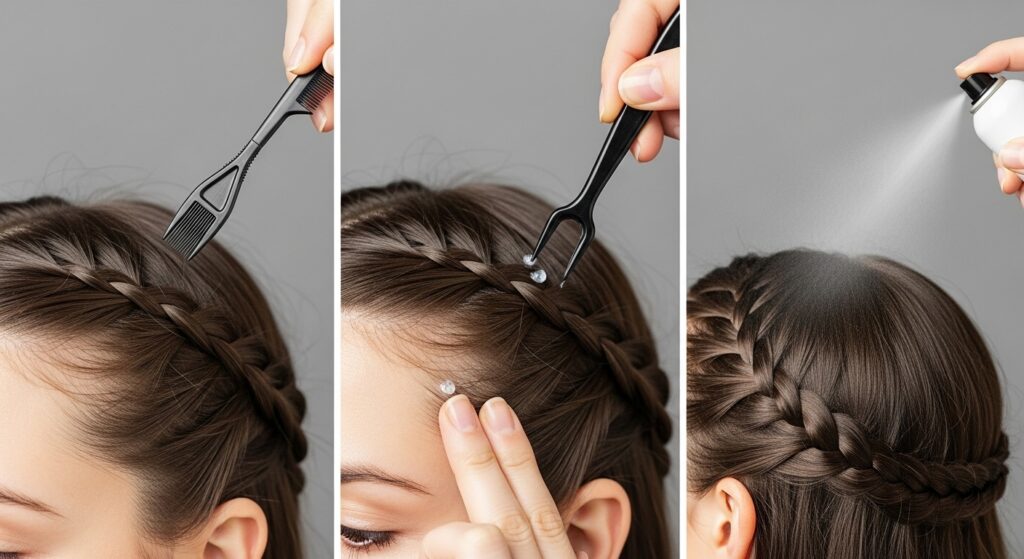 You don’t need a salon’s worth of products to fix this. In fact, you likely have everything you need already in your bathroom. Here’s your go-to kit for a braid emergency: