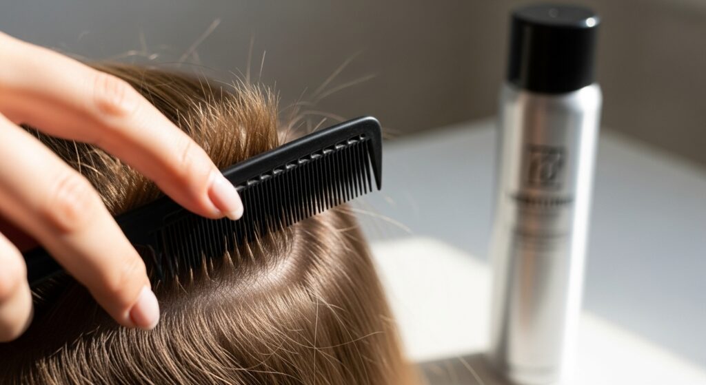 Step 1: The Root Lift. Start with dry or mostly dry hair. Section off the top layer of your hair, from your part back to your crown. Using a fine-tooth comb, gently tease the hair at the roots of this section by inserting the comb and pushing it towards your scalp in small, gentle motions. You only need to do this for the hair underneath; the top layer will smooth over it.