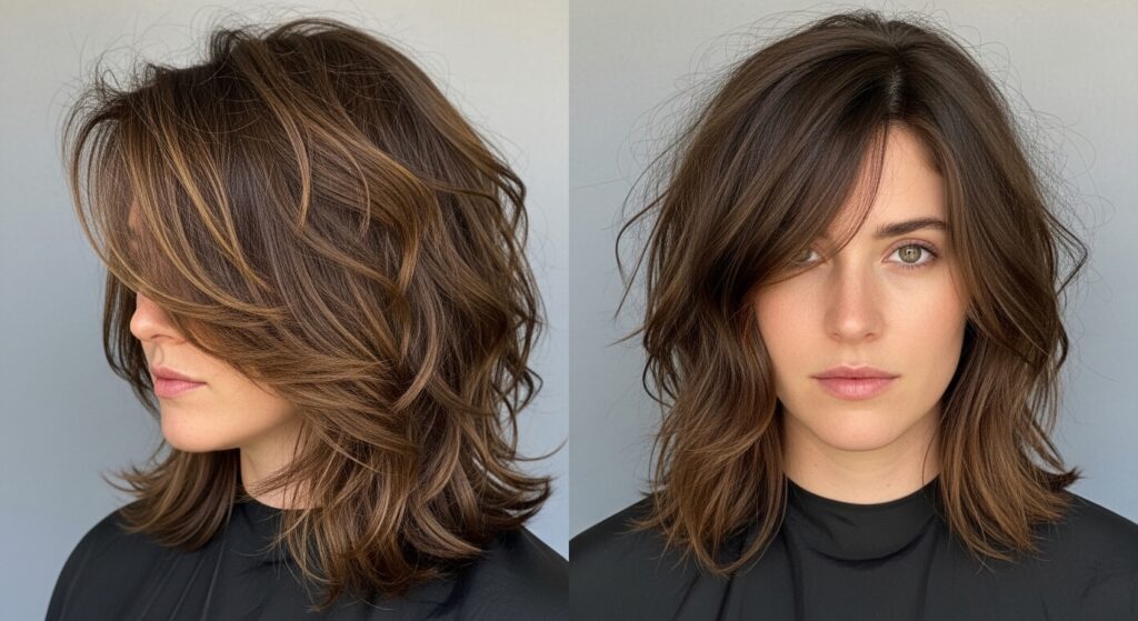 One of the fastest ways to completely change the look of your shag without any tools is to change your part. A deep side part can add dramatic volume and make your layers cascade in a new, eye-catching way. A center part can give a more balanced, modern feel, showcasing the symmetry (or intentional asymmetry) of your cut.