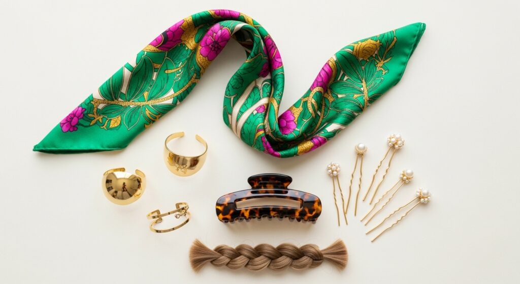 Colorful Scarves & Wraps: Take a vibrant silk or satin scarf. Fold it into a long strip and tie it around your head as a headband, letting the ends flow freely. Alternatively, you can weave it through your twists along your hairline for a pop of color.