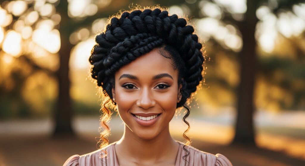This style looks intricate and complex, but when you’re starting with twists, it’s surprisingly simple. It’s perfect for a special event or when you want to feel like royalty.