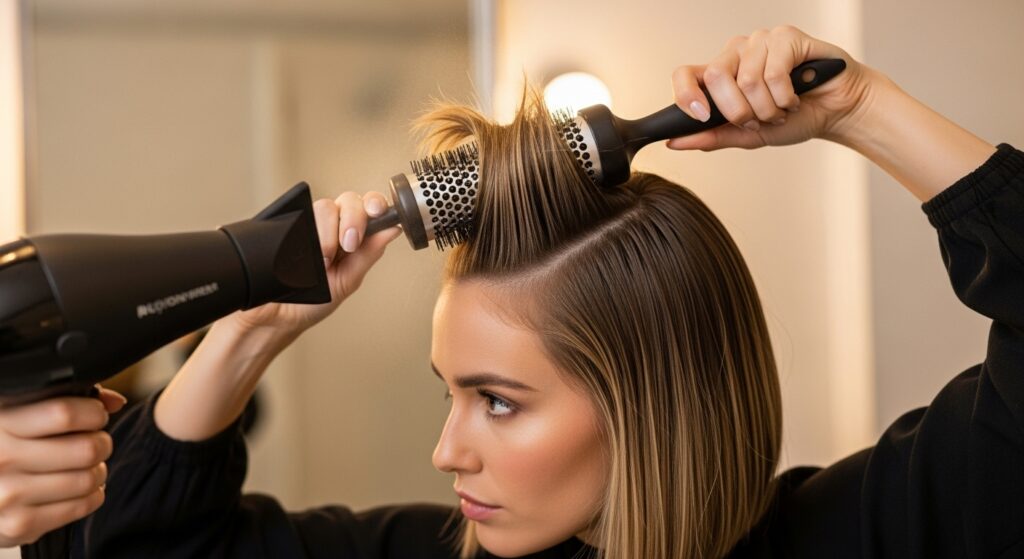 Teasing (Backcombing) with Care: For a special occasion, a little light teasing at the crown can work wonders. Take a small section at the top of your head, hold it straight up, and gently backcomb the hair at the roots with a fine-tooth comb. Then, smooth the top layer over it. This creates hidden volume that makes your bob look significantly thicker and more voluminous.