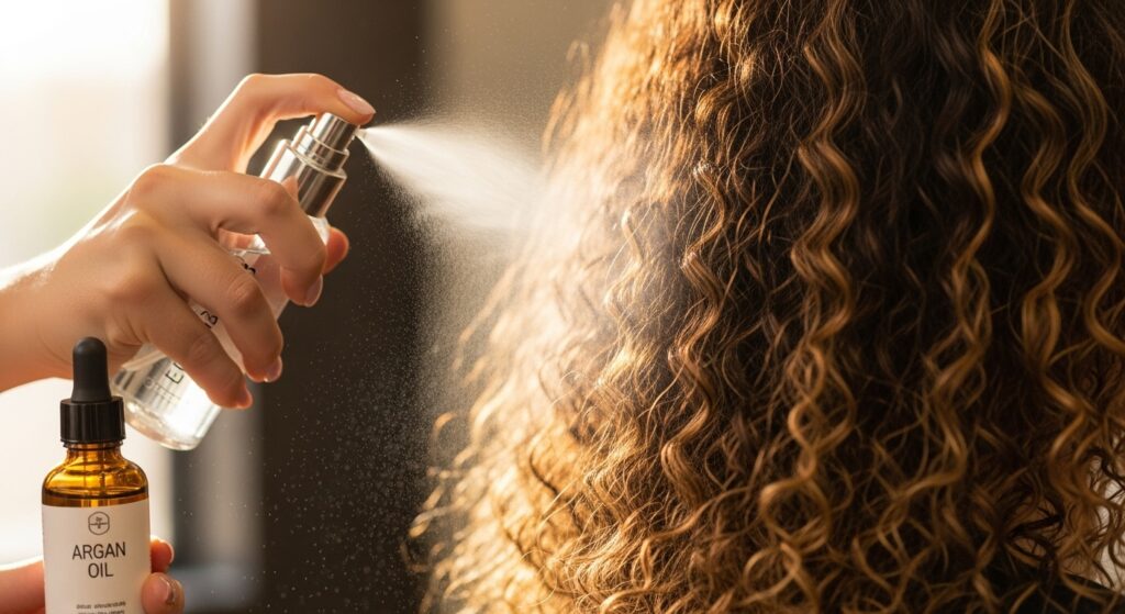 Here’s the pro move: Add a drop or two of a lightweight oil (like argan or jojoba) to your spray bottle. This helps to re-activate the stylers already in your hair while simultaneously combating frizz and adding shine. As you spray, focus on the mid-lengths and ends, where hydration is needed most, and gently scrunch from the bottom up to re-encourage your curl pattern.