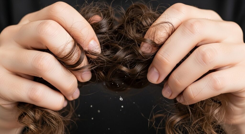 Wait until your hair is 100% completely dry. If you scrunch while it’s even slightly damp, you’ll introduce frizz. Once it’s dry, take a small amount of a lightweight hair oil or even just your bare, clean hands. Lean forward, flip your hair over, and gently scrunch your curls upwards, breaking the hard cast. You’ll hear a crinkling sound, and you’ll feel the hardness disappear, revealing the soft, bouncy, defined curls underneath. Don’t be afraid to get in there and scrunch all around your head until all the crunch is gone. This step transforms your hair from a stiff sculpture into a soft, touchable masterpiece.