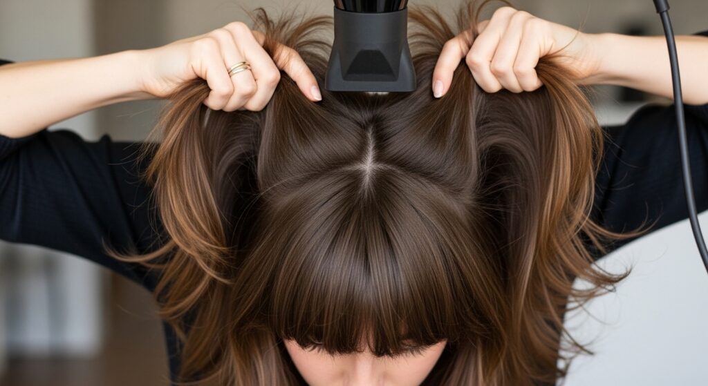 A flat crown can deflate the entire shag silhouette. The solution? Instant root lift. After applying a volumizing spray or mousse to your roots, flip your head upside down and blast your roots with a blow dryer for 30-60 seconds. When you flip back, gently tousle your hair with your fingers to settle the volume, avoiding a “teased” look.