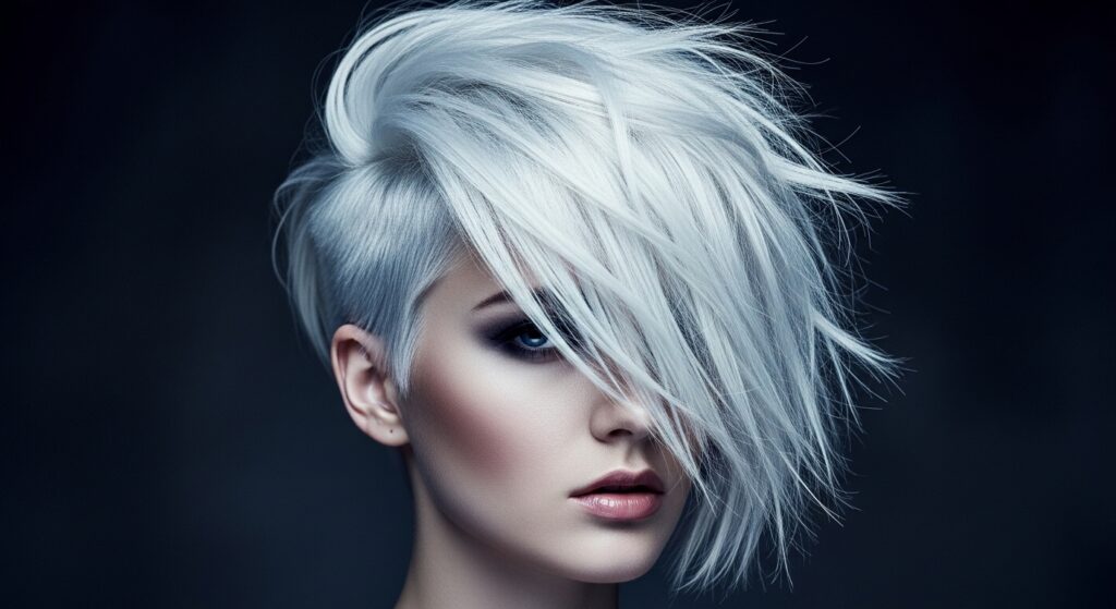 The best accessory for any hairstyle is confidence. This is a bold look, so own it! Play with makeup that complements the cool tones—think berry lips or smoky gray eyeshadow.