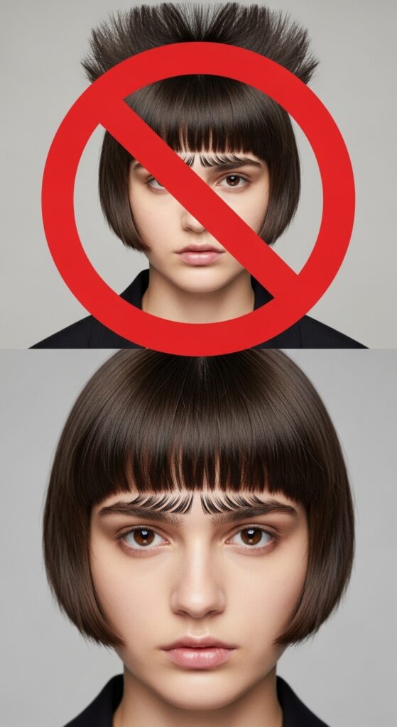 Let’s be honest: bangs are a commitment. These especially. They require regular trims every 2-3 weeks to maintain that sharp, just-cut line. If they grow out, they quickly lose their edgy effect.