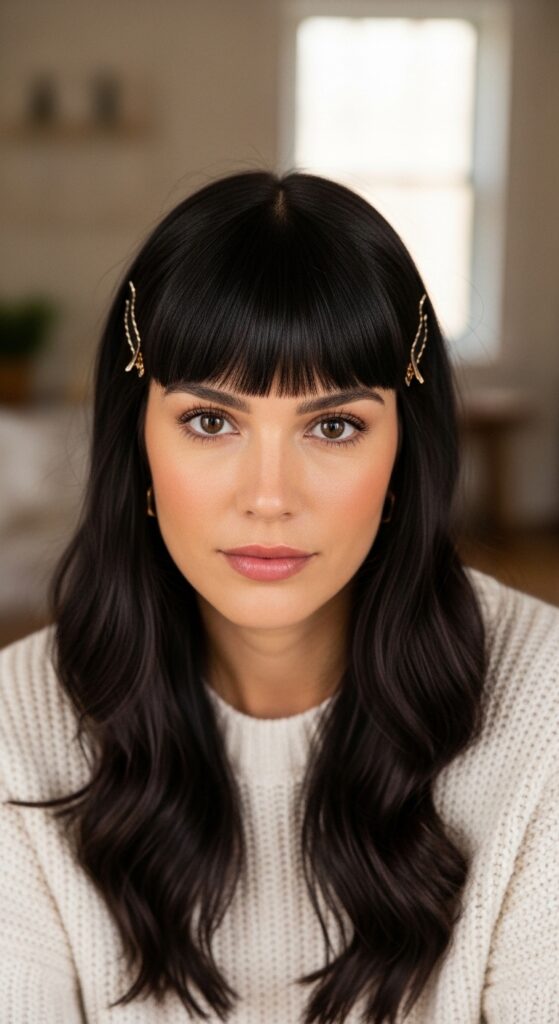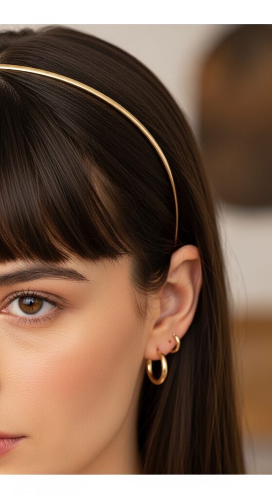Avoid heavy, wide headbands that push your bangs into a strange shape. Instead, opt for clips at the sides or just tuck one side behind your ear for a casual, asymmetrical look.