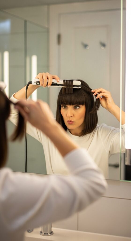 This simple step keeps your bangs shiny, smooth, and healthy, making the style last much longer between cuts.