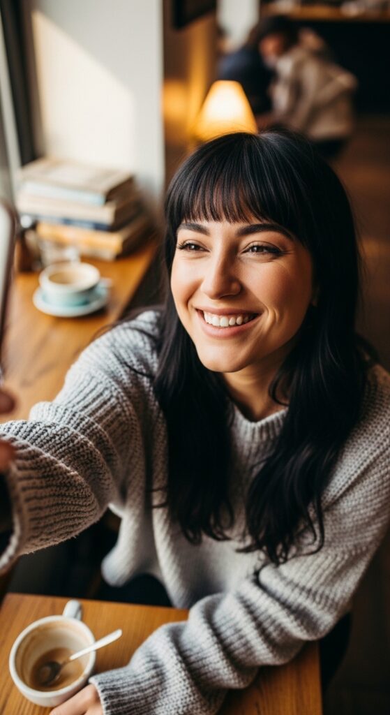 The goal is to look polished, not overwhelmed. Let the bangs be the star, and let your makeup be the perfect supporting act.